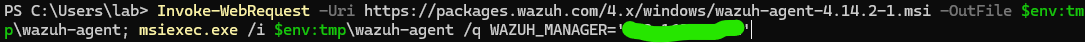 I'll be honest, I got stalled here for several minutes because the installer kept failing on my host machine. The issue might have been I wasn't running in Powershell terminal as admin OR because I had built-in Microsoft Defender running. While I didn't see any popups saying it had blocked something, I was successful after turning off Defender and rerunning the commands from an elevated Powershell terminal. Don't forget to start the service once you finish! It should now report in without issue.