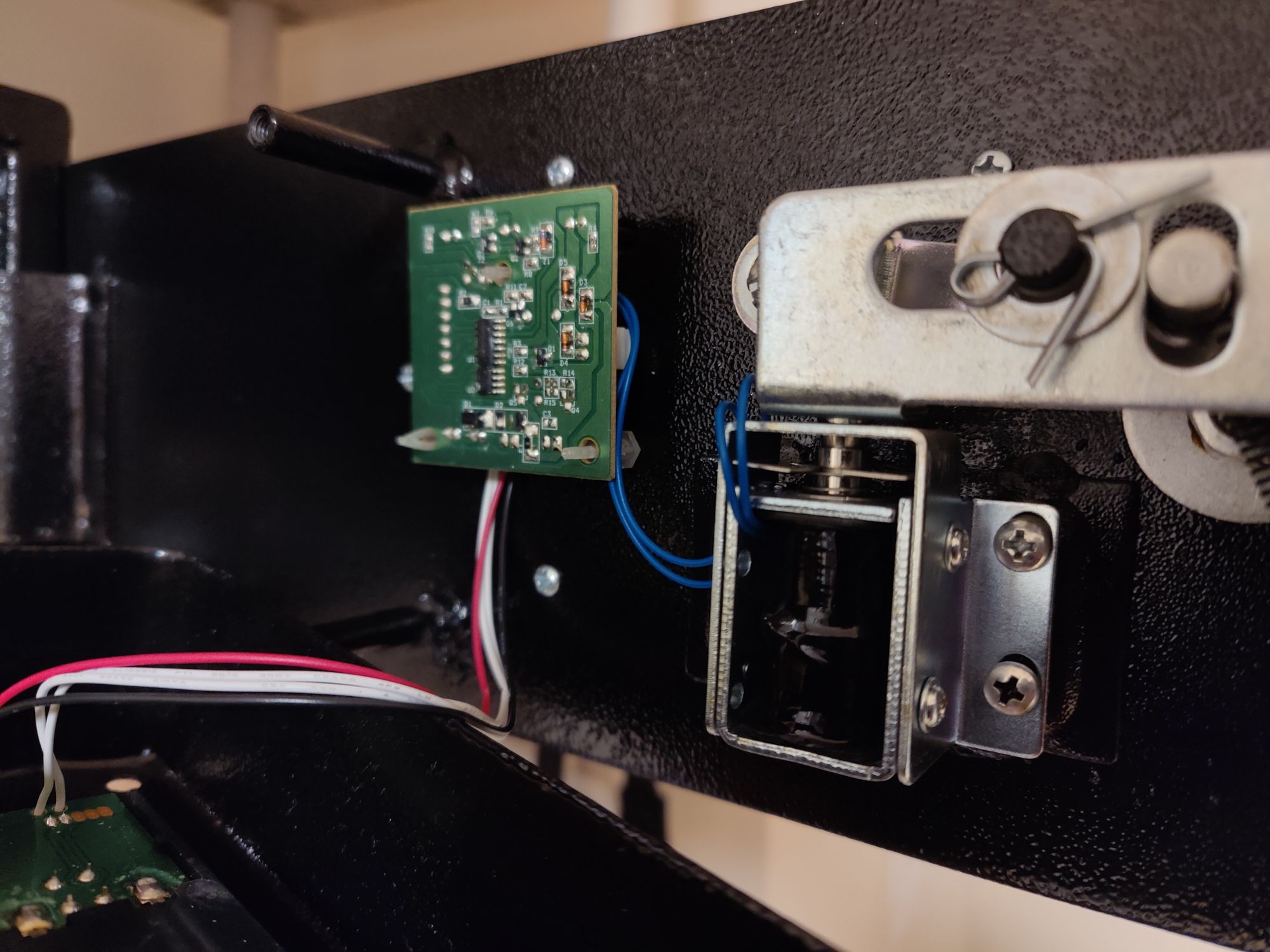 Once the safe is put back together, you shouldn't have any further issues with the solenoid being accessed from the three LED holes in front of the circuit board.