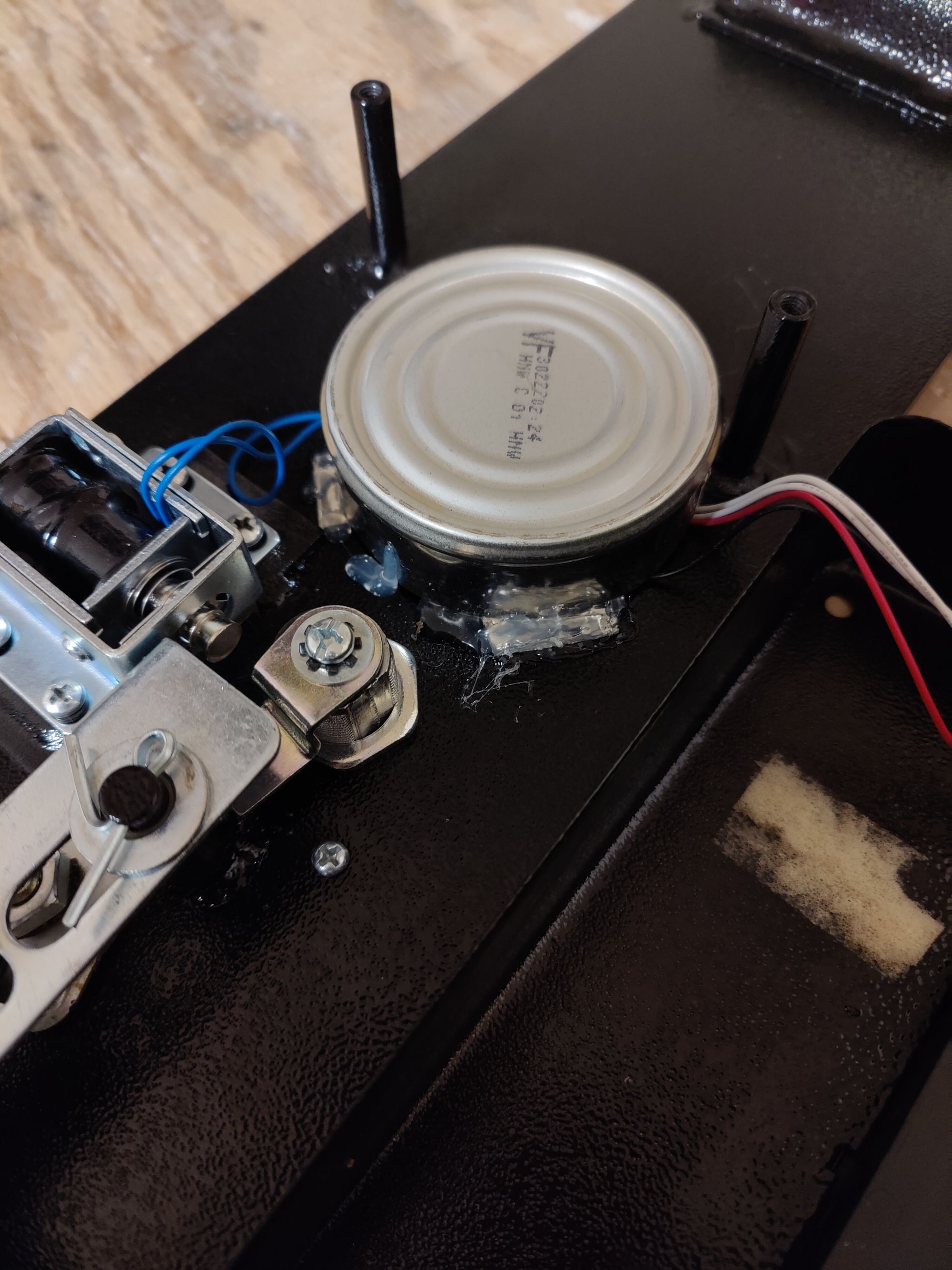 My first idea was simply welding a piece of steel between the circuit board and solenoid to block access, but this solution failed my criteria multiple ways. Most people don't have a welder lying around, let alone know how to use it. Also it introduced the risk of damaging the safe if the components overheated under such tight constraints. My final solution was much simpler and, in retrospect, much harder to circumvent than a single sided barrier.